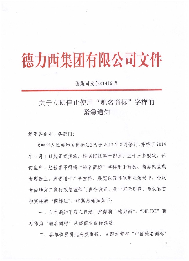 關(guān)于立即停止使用“馳名商標(biāo)”字樣的緊急通知